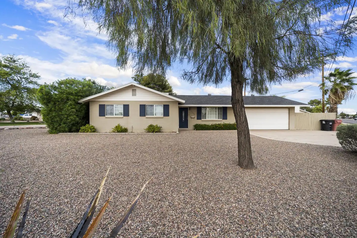 Uđite u ovaj prekrasno preuređeni smještaj iz 1946. godine u srcu Phoenixa ušuškan u porodičnoj zajednici Encanto Village. Svijetlo, prostrano, prozračno i uređeno do posljednjeg detalja za pravi odmor ili za savršenu fotografiju. Uživajte u svježem zraku dok uživate u piću na prednjoj terasi. Uživajte u pikniku ili se igrajte na travi u dvorištu. Bilo gdje da želite ići je u kratkom dometu.