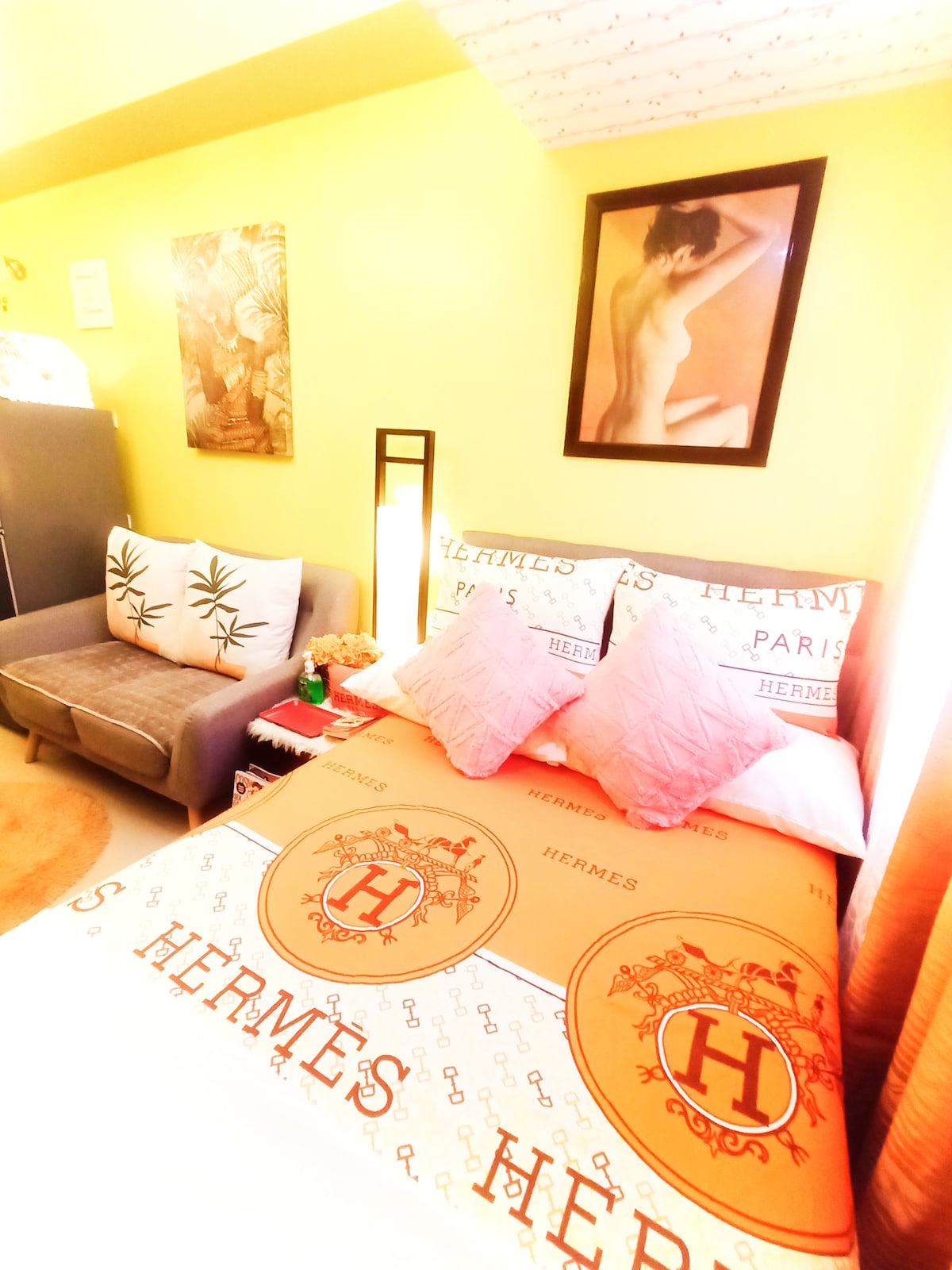 Ovaj studio je moderan i potpuno namješten. -55inch Google TV - Topla tuš kabina Bračni krevet od 54 inča s jorganom - Dodatni madrac - Indukcijski štednjak - Frižider - Kompletan kuhinjski pribor i posuđe - Trpezarijski sto/radni prostor - Klima-uređaj - Mašina za pranje veša – Ogledalo za cijelo tijelo Maven Condo is located in Capitol Commons, right in front of Estancia Mall where there are bars and restaurants, coffee shops, grocery, salon and spa, cinema, dept store.