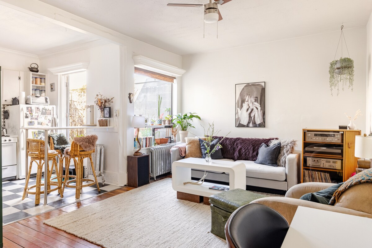 Ova prelijepa stara zgrada ima karakter u piku. Radijatori, visoki plafoni, tona kvadratnih snimaka i kada s kandžama. Na glavnom spratu se nalazi prodavnica tetovaža i mnogi restorani u kvartu. Centralna lokacija je praktična za svaku stvar, bilo da volite hodati, autobusom ili biciklom. Moj stan je velik, svijetao i ima privatnu oazu na otvorenom u kuhinji. *Molim vas, bez parfema ili kolonjske vode u mom stanu; ostaje dugo nakon što odete. **Nove fotografije stižu sredinom aprila!