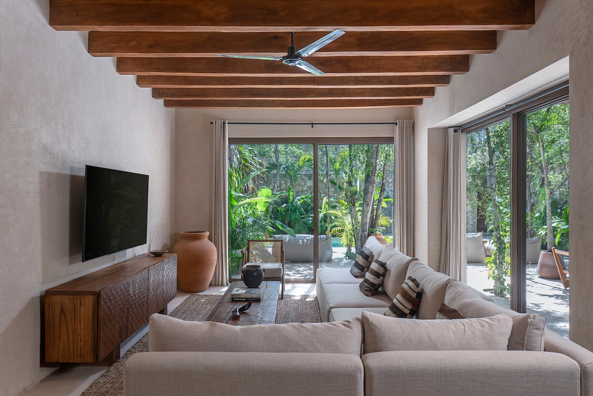 Doživite oličenje elegancije u stilu Tuluma u našoj rezidenciji Bohemian Chic sa stilom, udobnošću i pogodnošću. TEMPLIA je jedinstven, luksuzan 2BR/2BA smještaj s privatnim bazenom, vanjskom masažnom kadom i nagrađivanim dizajnom inspirisanim Maja, potpuno opremljenom kuhinjom, uslugom conciergea, brzim Wi-Fi mrežom i svim dodatnim uslugama koje su potrebne. Otkrijte skladan spoj luksuza i udobnosti savršenog za putnike koji cijene dizajn, privatnost i kvalitet. Nezaboravni trenuci vas čekaju u profinjenom životu u Tulumu!
