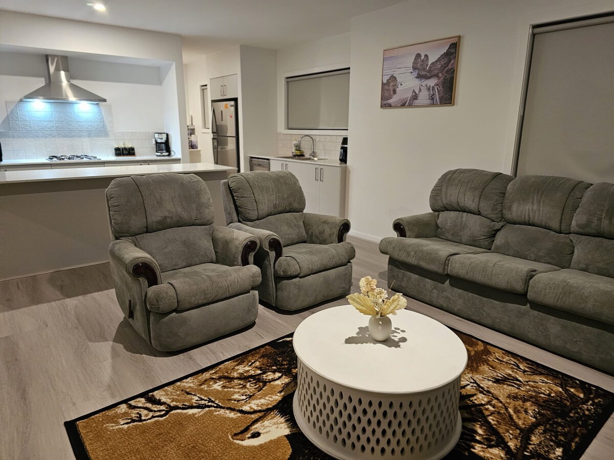 This home is perfect for families or groups, offering comfort, space, and modern living. Ideal for up to 9 guests. Features you’ll love: •4 spacious bedrooms – comfortable bedding for up to 9 guests. •2 large living rooms – plenty of space to unwind and enjoy your stay. • Study nook •2 modern bathrooms + separate powder room. •Fully equipped kitchen with all essentials for home cooked meals. •Alfresco •Air conditioning & heating for year round. •Smart TV + free Wi-Fi. •Secure parking available.