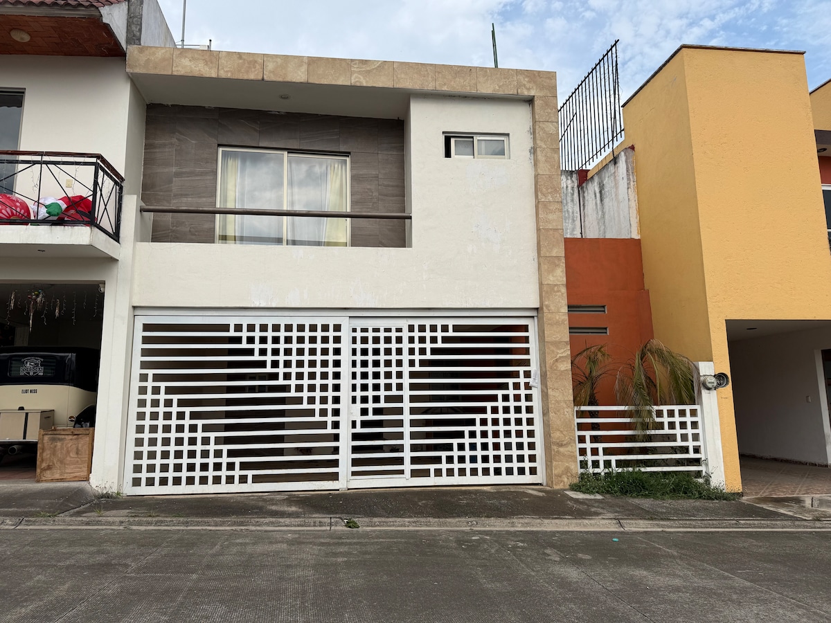 Udobna kuća je kompletna kako bi dočekala vas i vašu cijelu porodicu, s dovoljno prostora u mirnoj i sigurnoj frakcionaciji. 4 spavaće sobe s 5 kreveta i kaučem na razvlačenje. Vlastiti parking mjesto. 5 minuta od tržnih centara (Walmart- Sams- Cinepolis- Suburbia) ima park 2 minute za vježbanje i opuštanje.