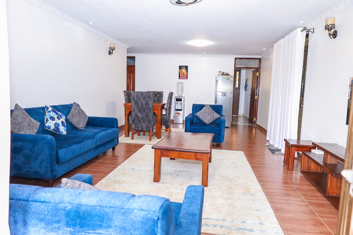 Aryana Namješten stan se može pohvaliti modernim potpuno namještenim maisonetteom s 4 spavaće sobe koja se nalazi u mirnom seoskom okruženju u jezerskoj strani grada Kisumua. Uživamo u pružanju gostoprimstva svim vrstama putnika, od putnika na odmoru do porodice s djecom - Imamo lijepu veliku klimatizovanu dnevnu sobu - Velika moderna kuhinja otvorenog tipa - Odvojena trpezarija sa stolicama u stilu restorana - Elegantna besprijekorna kupatila - dovoljno parking mjesta