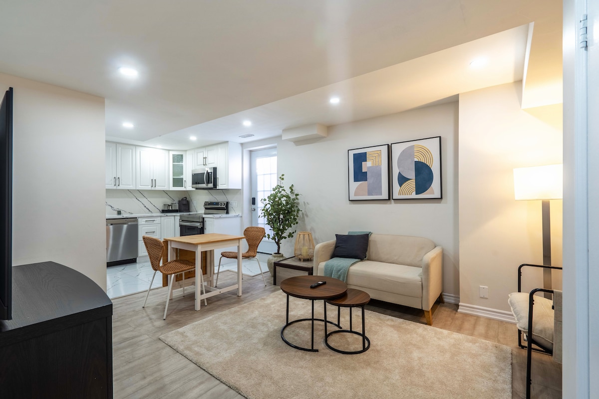 Enjoy your stay in this brand new, bright and modern 1-bedroom basement apartment, with a queen size bed , perfect for families, professionals, or tourists. The apartment features a cozy bedrooms, a fully equipped kitchen, a living room with comfy seating, dedicated dining area and large windows filling every room with natural light. The apartment is minutes away from local parks, shopping, restaurants, and quick highway access for exploring the GTA. No smoking, No pets or parties allowed.