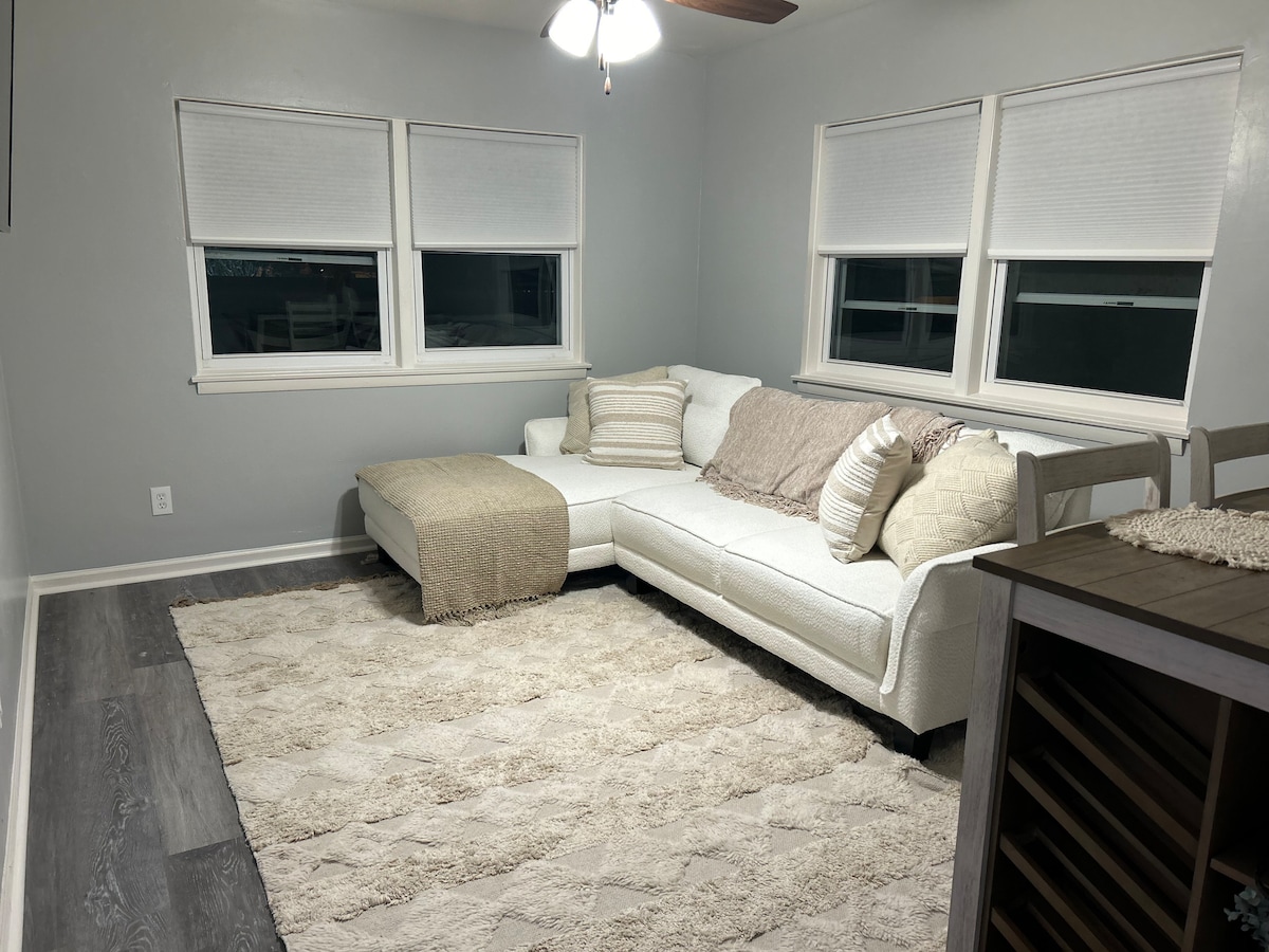 Kick back and relax in this calm, stylish space. Our Hideaway is located just 1 mile from the airport near shopping, restaurants, bars,a library and much more. We have a spacious 3 bedroom apartment with a dedicated workspace perfect for business or class work. We also offer off street parking and a secure entrance. In back we have a fenced in courtyard with an outdoor seating area perfect for a casual, quiet and relaxing summer night. Perfect for long work stays!