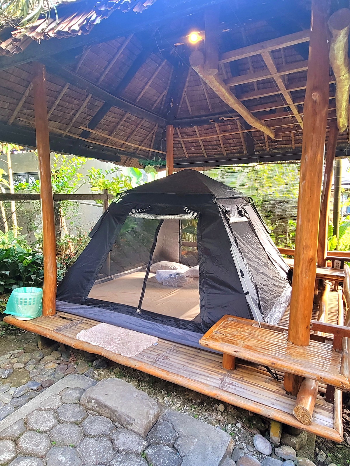 Escape to our campsite where adventure meets comfort - nestled just two hours away from the metro! Amenities: - Free 30-minute ATV ride - Private outdoor tub w/ massage jets - Air-conditioned tent w/ 3 queen-size memory foam beds - Outdoor cinema with Netflix - Activities: birdwatching, stargazing, karaoke, card games - Own toilet and bath - With camping cookwares and utensils (+₱130/butane) - Telescope - Free use of grill - Bonfire setup with s'mores (+₱499) - Pets are welcome (+₱415/pet)