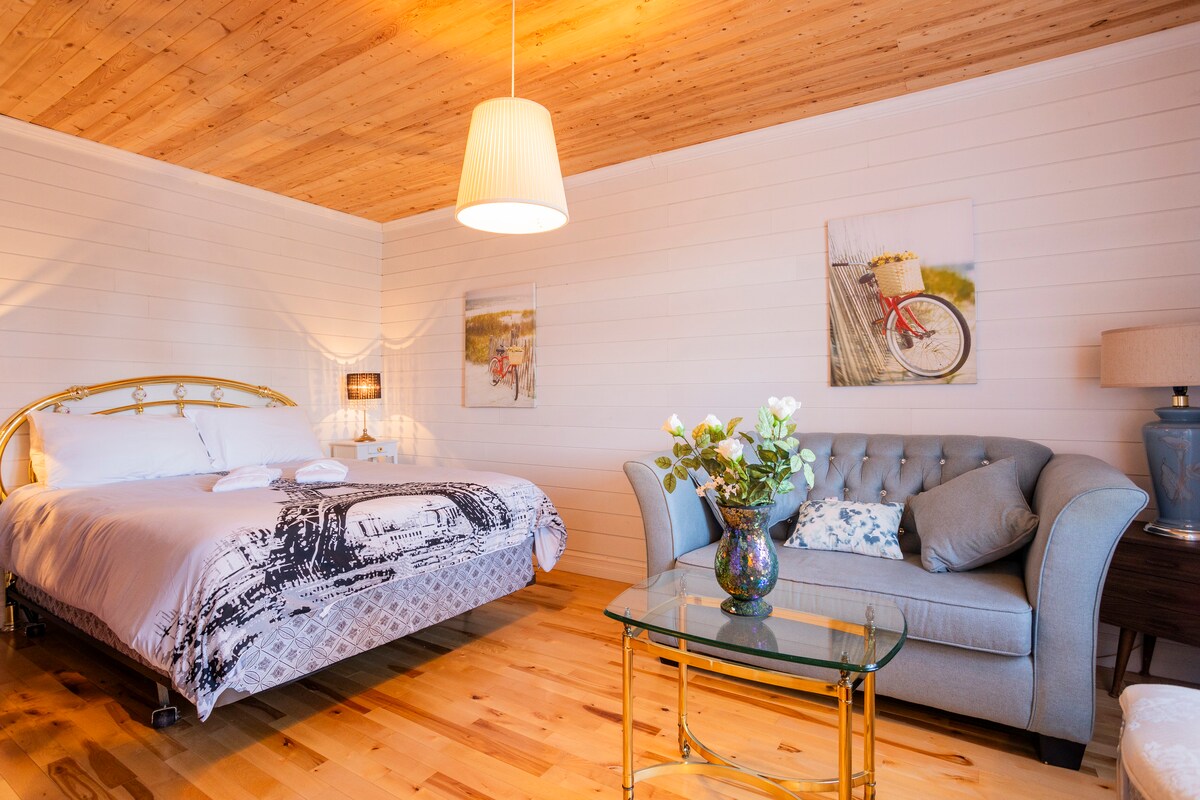 Cijeli jednosobni stan s balkonom koji se nalazi u centru Gaspéa. Svježe renoviran i prefarban. Opremljen i opremljen novim sadržajima. Nalazi se u blizini svih usluga pješice: restorana i barova, trgovačkog centra, koledža, šetnje zaljevom itd. Kuhinja ima sve što vam je potrebno za kuhanje: posuđe, posuđe i pribor za jelo. Wi-Fi je brz, a parking je uključen. Savršeno za parove ili posjete radnicima.