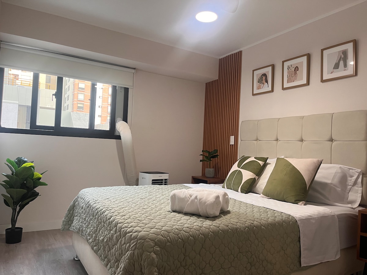 Uživajte u udobnosti ovog mirnog smještaja koji se nalazi u centru grada. Ima 2 Smart TV-a, frižider, mikrovalnu pećnicu i još mnogo toga. Vrlo blizu velikog broja mjesta za uživanje u umjetnosti, muzici i najboljoj kulinarskoj ponudi u Limi. Također 5 minuta hoda do Larco Mar i centra Mirafloresa. Uživajte u simpatičnom bazenu, teretani, coworkingu, vešu, prostoru za roštilj i još mnogo udobnosti. Nedaleko od novog pješačkog mosta turističkog koridora koji povezuje Miraflores i Barranco.