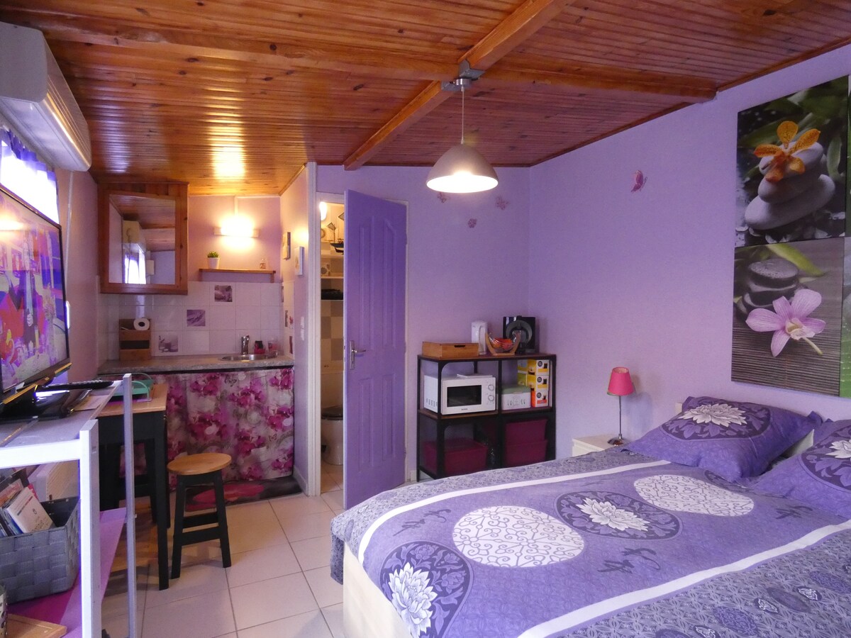 Spavaća soba, prostrana (23 m2), nalazi se na 1. spratu umjetničkog studio potkrovlja (skulptura /keramički kursevi): nezavisni ulaz, tuš kabina, WC, tuš. U prizemlju, doručak, lokalni proizvodi i domaći džemovi. Imate privatnu kuhinju s frižiderom i malom dnevnom sobom.(32m2), kao i mašinu za pranje veša. Prostrana soba ima tuš kabinu. Doručak, s lokalnim proizvodima. Privatna kuhinja s frižiderom i dnevnom sobom.
