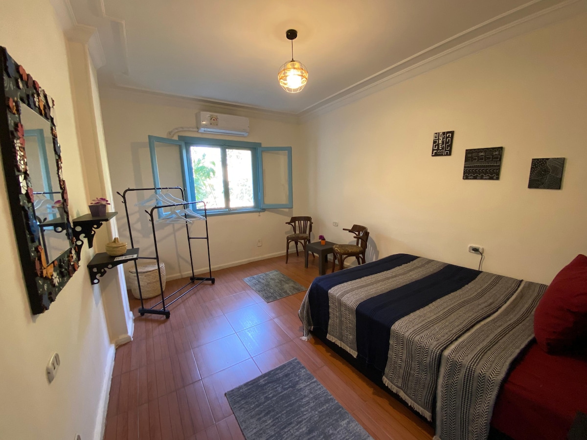 Naš smještaj se nalazi u Maadiju, zelenom predgrađu Kaira, u blizini Nil Cornichea. Probudite se uz decenije staro prekrasno drveće po kojem je Maadi poznat. Svidjet će vam se naš smještaj na najvišem spratu naše zgrade. U našem smještaju možete uživati u velikoj, privatnoj terasi s koje se možete diviti jarkim crvenim zalascima sunca iznad krovova nakon napornog dana obilaska Kaira. Do prodavnica i restorana možete doći pješice ili bilo kojim drugim mjestom udaljenim taksijem, Uberom ili metroom. Naš smještaj je pogodan za 1 ili 2 turista i poslovnih putnika.