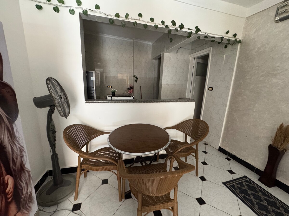 Uživajte u luksuznom boravku u srcu Aleksandrije u ovom modernom jednosobnom stanu s pogledom na more u Saba paši, jednoj od najelegantnijih gradskih četvrti ✔ Predivan pogled na more ✔ Potpuno novo namješteno sa modernim modernim dekorom ✔ Udoban bračni krevet + udoban prostor za sjedenje ✔ Brzi Wi-Fi i Smart TV ✔ Potpuno opremljena kuhinja ✔ Klima uređaj za vašu udobnost Potpuno novi kućanski aparati inamještaj Savršeno za porodične, poslovne putnike ili goste koji žele udobnost, stil i pogled koji oduzima dah.