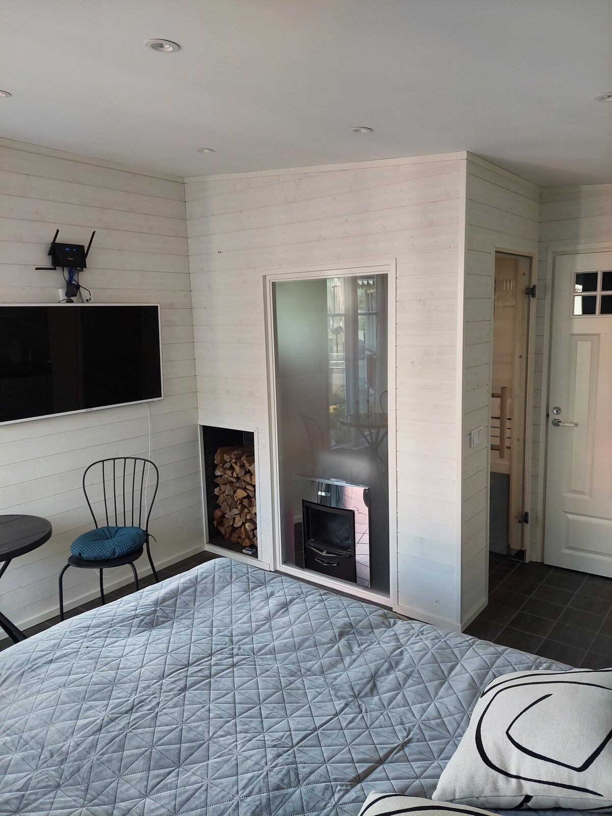 Sjöstugan - naš biser tik uz jezero! Vlastita kuća s potkrovljem za spavanje, kuhinjom, lijepom velikom sobom s kaminom i pogledom na jezero. Sauna na drva sa kupanjem u jezeru odmah pored. Hidromasažna kada na molu - uvijek topla. Pristanište za kupanje 5 metara od vrata. Pristup brodu. Ako želite kupiti ribolovnu dozvolu, kontaktirajte domaćina. Drva za peć i saunu su uključena. Dvorište je ograđeno do jezera i naš pas Beagle Vide je često vani. On je dobar. Posteljina, peškiri i čišćenje su uključeni.