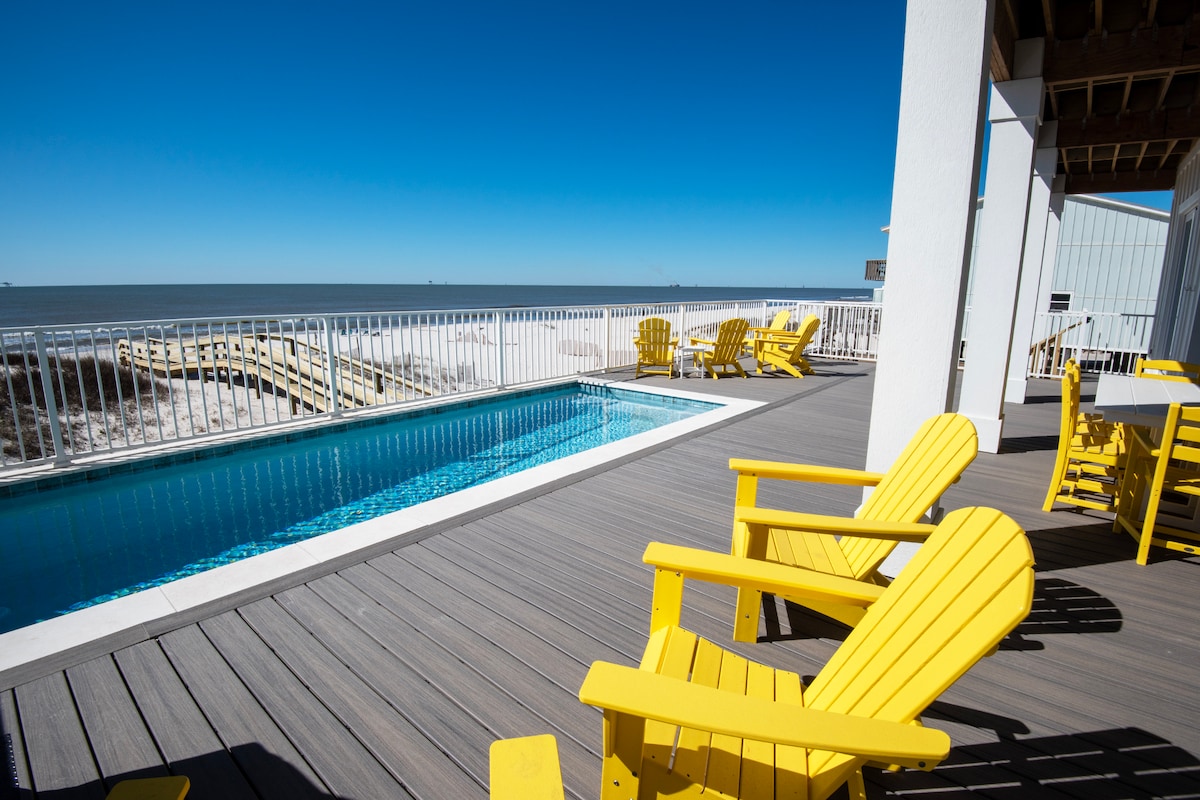 Your Private Island Escape Awaits! Ready to trade the noise for ocean breezes and barefoot days? Welcome to our 4BR/3BA home that has room for everyone to relax. Rinse off in the incredible outdoor shower, fire up the grill, and spend your days splashing in the custom-built pool—complete with a tanning ledge and a shallow play area perfect for little beach explorers! Movie night, but make it epic… Float under the stars and watch your favorite films on the mounted 65” TV—right from the pool.
