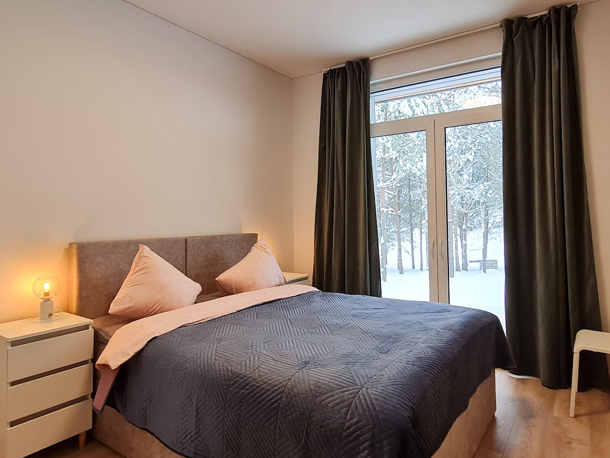 To je nova vila s velikom terasom na privatnom jezeru. Postoji dnevna soba s dobro opremljenom kuhinjom, kupatilom i saunom s grijalicom od crvene cigle za mekanu i nježnu toplinu na 1. spratu. Masažna kada se nalazi u blizini terase. (dodatni trošak) Sve 4 spavaće sobe imaju balkone i privatna kupatila i WC u 2. brašnu. Mirna i zelena površina, konji i poniji Žemaitukai žive u blizini, besplatan Wi-Fi i privatni parking. Privatna sauna ili hidromasažna kada treba pripremiti 8 sati, cijena 100 eur za svaku.