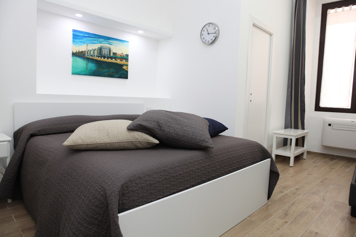 Uživajte u elegantnom odmoru u ovom smještaju u centru grada. Stan se nalazi u srcu centra Barija u okviru jedne od najljepših palata u Bariju, koja se nalazi na glavnoj ulici Bari (Via Sparano da Bari). To je završeni otvoreni prostor opremljen svim udobnostima kao što su klima uređaj, grijanje i Wi-Fi. Posteljina, čisti peškiri i sadržaji u kupatilu su dostupni. Kuhinja se sastoji od čajne kuhinje, frižidera itd.