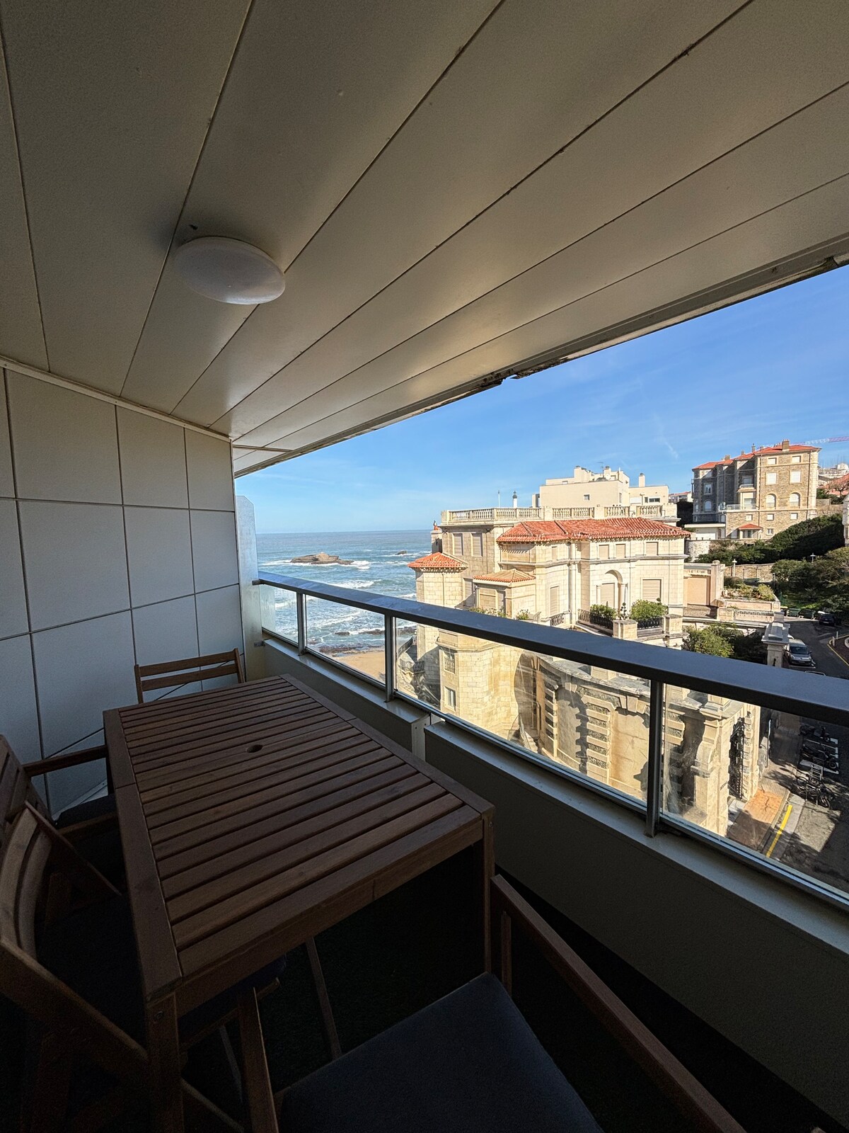STUDIO S POGLEDOM NA OKEAN Studio s balkonom, u luksuznoj rezidenciji, okrenut prema okeanu. Nalazi se na 9. spratu, s panoramskim pogledom na plažu Biarritz Opis: opremljena kuhinja, 1 krevet od 160 cm, TV, zasebna WC tuš kabina. studio za 2 osobe Bazen (od juna do septembra). Snage: pogled koji oduzima dah u jednom od rijetkih studija u rezidenciji, koji nudi balkon s pogledom od 180°. Sprat:Sprat Opremljeno Wi-Fi mrežom Dodatna posteljina i čišćenje na zahtjev Snižena cijena parkiranja na zahtjev