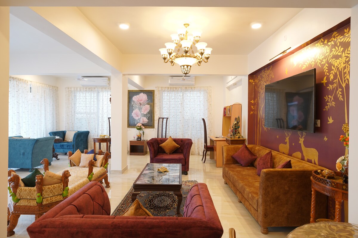 Opustite se u ovom udobnom smještaju 1BHK samo 10 minuta od Gradske palate s velikim privatnim natkrivenim bazenom, besplatnim preuzimanjem ili spuštanjem s bilo kojeg mjesta u gradu, uključujući aerodrom, punjač za električna vozila, parking u sklopu objekta za sve veličine automobila i atmosferu prikladnu za kućne ljubimce.