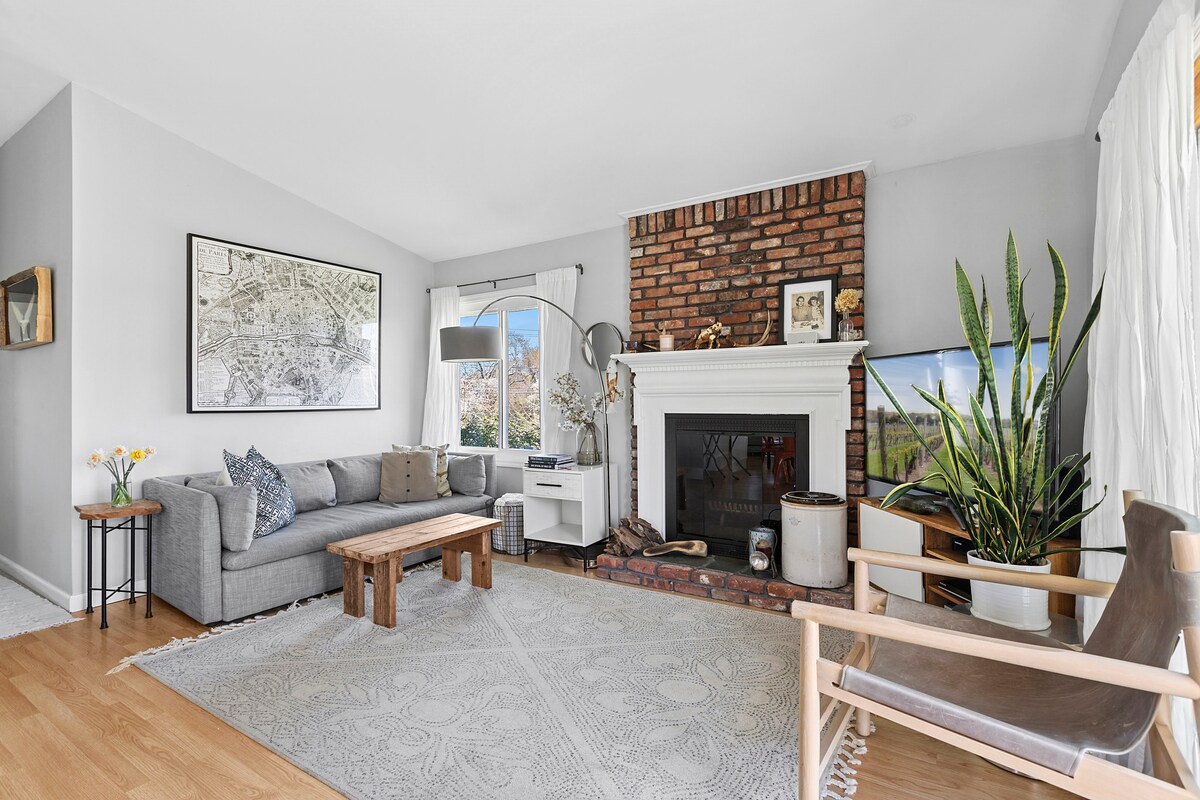 Skandinavija i Montauk se susreću u ovom sofisticiranom, udobnom, cjelogodišnjem utočištu s enterijerom otvorenog tipa i velikim, privatnim ograđenim dvorištem. • 950 kvadratnih stopa, 2 spavaće sobe (kompaktne, ali udobne), 1 kupatilo, potpuno opremljena moderna kuhinja, perilica i sušilica za veš, klima uređaj • Peć na drva, peć Solo, terasa, vanjski tuš, visokokvalitetna posteljina i namještaj/ukrasi • Koraci do LI Sound & Harbor. 3 milje do okeana/grada • Vlasnik je u privatnom studiju sa vlastitim ulazom u kuću. Nema zajedničkih prostora! • Raspitajte se o psima i fleksibilnim periodima iznajmljivanja KLIKNITE na VIŠE za VAŽNE INFORMACIJE!