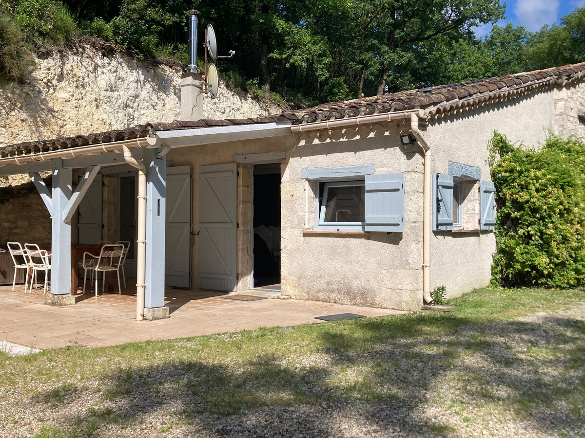 Vrlo mali smještaj jednostavno uređen za dvije osobe u malom pomoćnom objektu, usred srednjovjekovnog grada Montcuq. Pripojen je kući vlasnika, ali ima privatni ulaz i direktan pristup vrtu. Idealno za ljubitelje planinarenja, izleta u prirodu ili starih kamenova. Kuhinjski prostor je odvojen od malog dnevnog boravka. Spavaća soba je na mezaninu i gleda na dnevnu sobu. Kupatilo ispod sobe. Napomena: masažna kada je uklonjena.