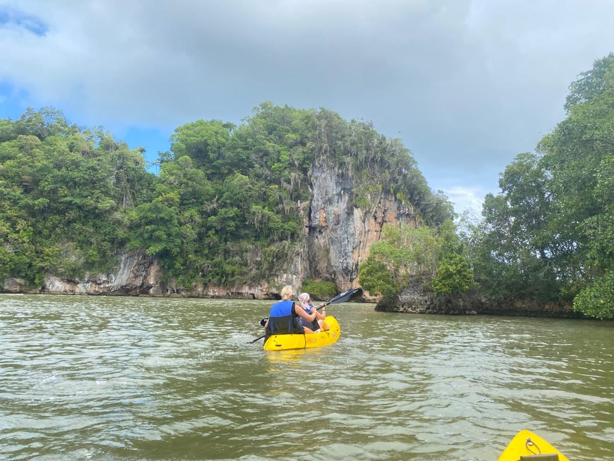 Planirate li posjetiti Nacionalni park Los Haitises i trebate odsjesti negdje preko noći? Svim putnicima nudimo poseban paket - Smještaj, obilazak i transfer. Možete birati između opcija u nastavku kako možete istražiti park... Dobijate čistu privatnu sobu koja se nalazi u prekrasnom selu Sabana de la Mar sa svim osnovnim potrepštinama koje su vam potrebne. Recepcija 24 sata sa sigurnosnim kamerama u cijelom području. Transfer iz smještaja i nazad je uključen.