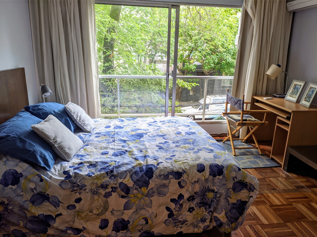 Novi stan u Pocitosu, 2 bloka od Ramble. Ima 2 spavaće sobe (jedna u sklopu apartmana) s bračnim krevetom, a drugu s jednostavnim krevetom i radnim stolom. Klima-uređaj 2 kupatila, opremljena kuhinja (sve za kuhanje), terasa za pranje veša, balkon ispred, Osim toga; 65`Smart TV, (spavaća soba u TV apartmanu od 40'). Fotelja s izborom (krevet). Aparat za kafu Dolce Gusto,Wi-Fi velike brzine za kućni ured. PARKING za 1 automobil. Portir od 8 do 16 godina, a nalazi se u srcu Montevidea.