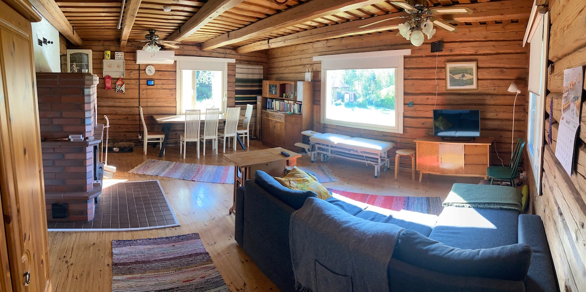 Tipična finska seoska kućica (55,8 m2) izgrađena je 1972. godine i potpuno obnovljena 2014. godine, uz očuvanje autentične atmosfere. Najbliža prodavnica ili benzinska stanica udaljena je 25 kilometara. Živimo iza šume 200 metara od seoske kućice tokom cijele godine. Lokacija seoske kućice je jedinstvena po tome što s jedne strane osjećate potpunu slobodu i privatnost, s druge strane, uvijek smo tu i spremni pomoći i komunicirati ako želite. Naša parcela i vrt su uvijek otvoreni za naše goste.