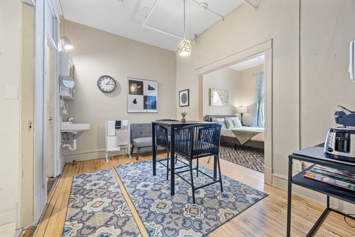 Small, simple, and quaint studio that is perfect for a solo or couple get-away to explore the vibrant nightlife and historical downtown Fargo. Just the right size to rest and re-coup after visiting all the main attractions, eateries, breweries, and boutiques that are right at your doorstep. If you’d rather walk the paved trail along the Red River, visit the Red River Market in the summer, and cook your own food, the micro kitchen accommodates.