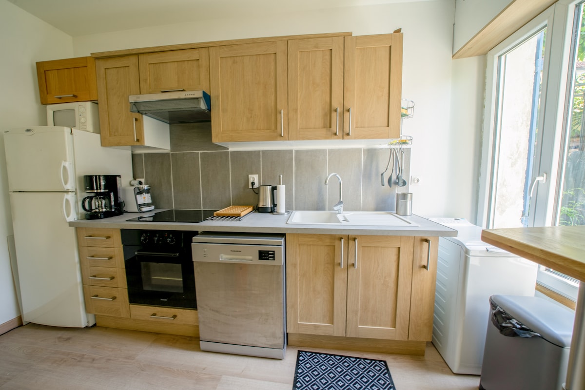 Studio sous notre pavillon , accès complètement indépendant. Vous disposez d’une penderie, cintres et étagères . Salle de bain indépendante avec douche à l’italienne, lavabo , rangement, sèche cheveux , linge de toilette, lave linge avec étendoir . kitchenette avec frigo , plaques , four , micro ondes, cafetière Senseo , bouilloire, grille pain, ustensiles de cuisine nécessaires pour préparer les repas . 1 lit 2 personnes , draps fournis . Tv accès wifi.