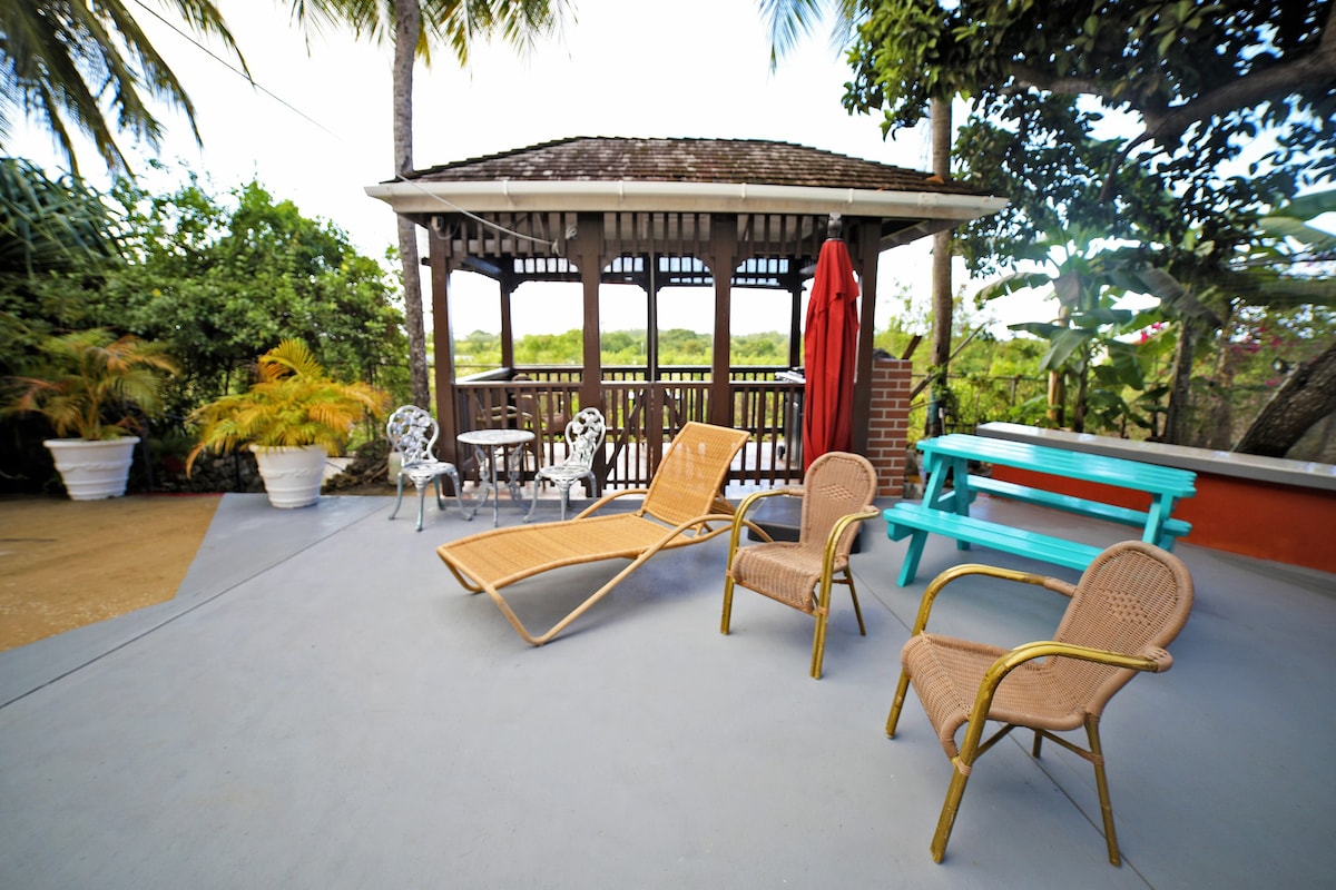 Ovaj jednosobni stan ima veliki privatni natkriveni vanjski prostor za objedovanje s pogledom na more. Nalazi se na mirnoj plantaži od 10 hektara, okružen valovitim poljima šećerne trske. Prekrasan zajednički bazen sa slanom vodom od 12 metara sa prostorom za roštilj i dodatnim natkrivenim zajedničkim prostorom za objedovanje. Objekat je povezan pješačkim stazama kroz šećernu trsku i džunglu. Samo 7 minuta vožnje do plaže. Opustite se u ovom jedinstvenom i mirnom smještaju.