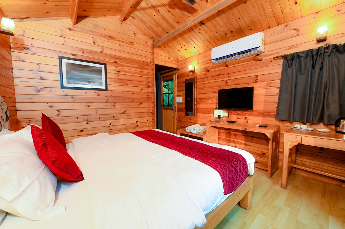 This upscale, unique coastal retreat in Anjuna is designed for slow, relaxed stays by the sea. Thoughtfully crafted wooden cottages are arranged around a serene swimming pool, offering privacy, comfort, and a calm escape just a minute walk from the beach. Wake up to gentle coastal mornings and enjoy a complimentary breakfast, included with your stay, before heading out to explore Anjuna or simply unwinding poolside.