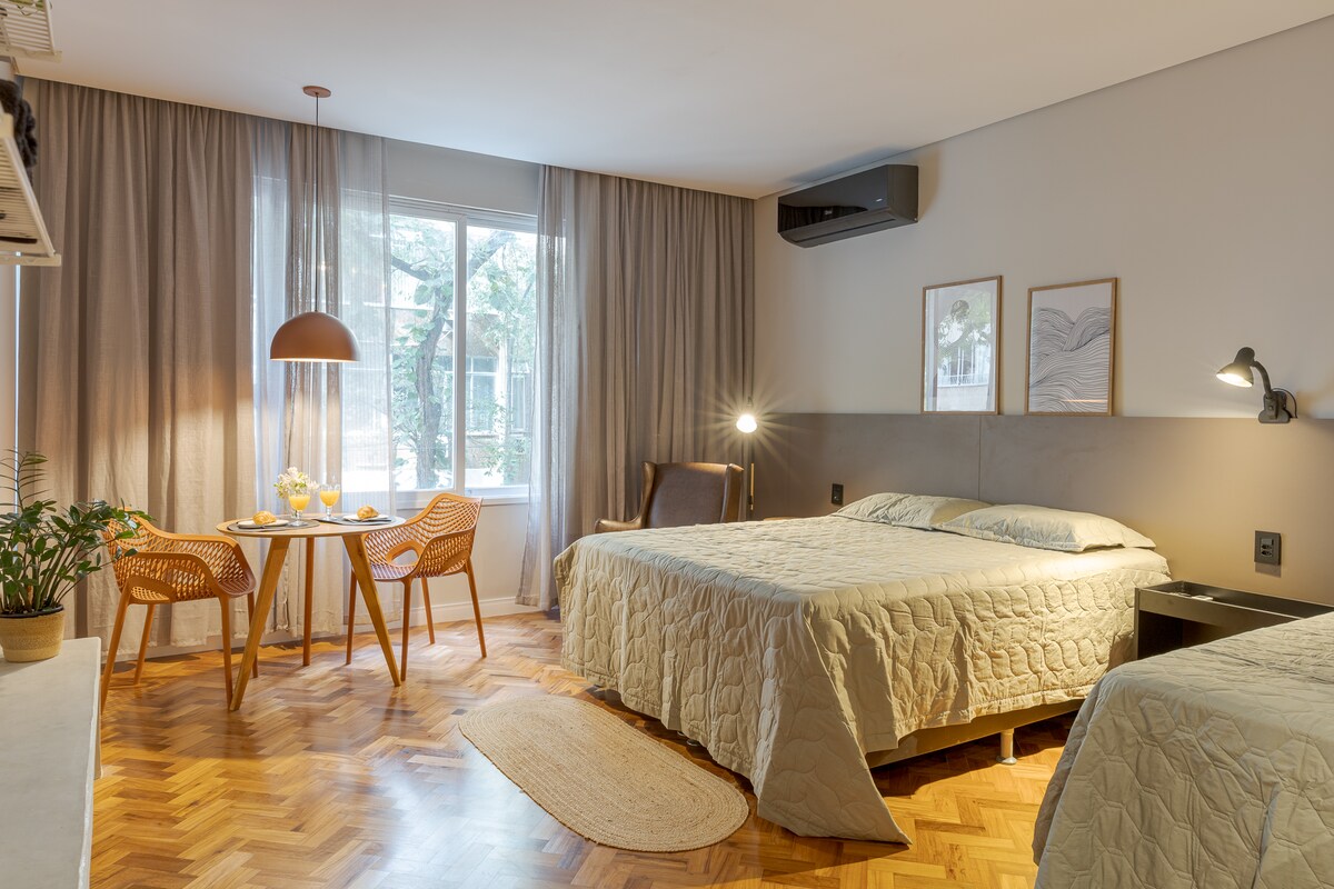 Odličan stan na plaži Ipanema, u Arpoadoru, najzanimljivijem i najtraženijem dijelu grada. Stan je kompletan i dizajniran da pruži maksimalnu udobnost tokom vaših dana u Marvelous Cityju. Apartman s bračnim krevetom, podijeljenim klima-uređajem u dnevnoj i spavaćoj sobi, pametnim TV-om od 55°, kompletnom kuhinjom i Nespresso aparatom.