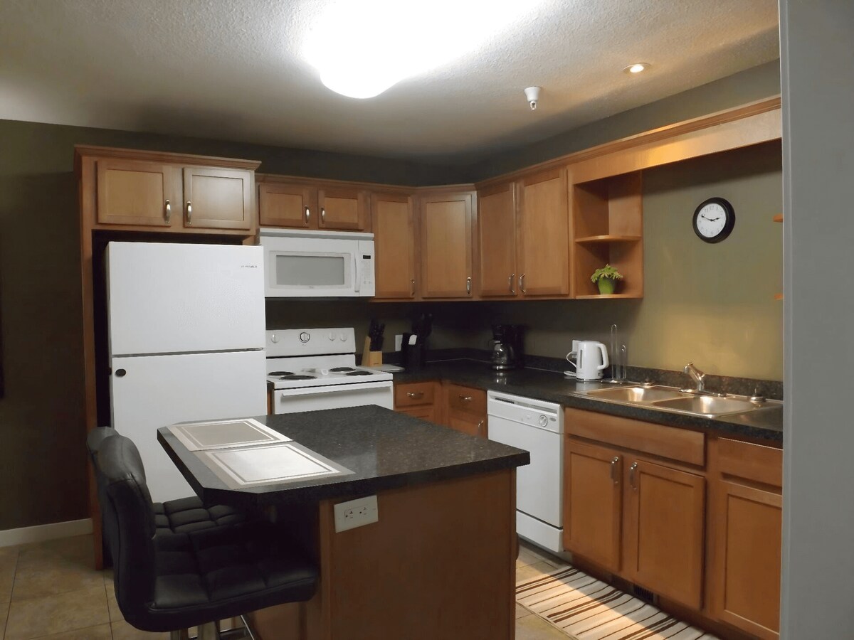 Potpuno namješten i opremljen izvršni kondominij - 2 spavaće sobe i 2 kupatila i kancelarija/brvnara 60-inčni HD TV, 32-inčni HD TV, kožni kauč i stolica, Barske stolice, luksuzni madrac na vrhu jastuka, jacuzzi kada, ormar za šetnju, luksuzni madrac Queen Size, plahte s visokim navojem i jastučnice, peškiri, radni sto i stolica, potpuno opremljena kuhinja, High End F/S/D, bonus mali aparati, uključujući Keurig aparat za kafu, Deepfreeze, Large Texas Size Deck w/Patio Furniture, Bonus pristup sobama