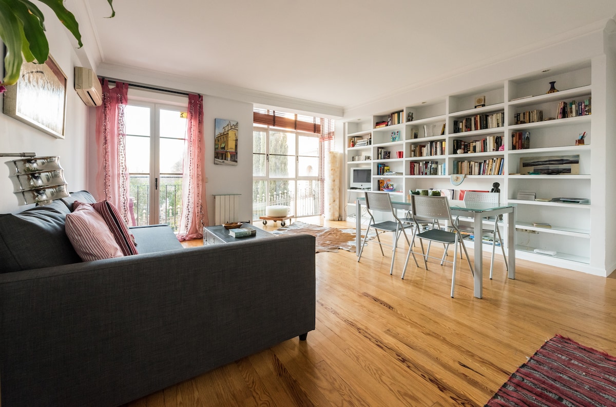 Iznajmili smo ovaj stan koji je bio naš dom na duže vrijeme dok pleme nije odrazilo, uvijek smo se brinuli o njemu s pažnjom, to je oaza u srcu grada, s pogledom na Botanički vrt Madrida, zalasci sunca su poklon. Nekoliko koraka od utočišta, autentična pluća grada, stanice Atocha (AVE, Cercanías Metro)i najboljih muzeja :Prado, Reina Sofía ,Thyssen... Stan ima: veliku trpezariju s kaučem na razvlačenje, poluintegriranu kuhinju, spavaću sobu i kupatilo.