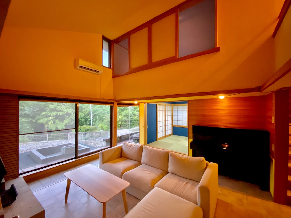 Nudimo elegantnu kuću koja crta u Kowakitani Onsenu u cjelini. Udaljen je 7 minuta hoda od autobuske stanice Monkey Tea House, a pristup je također vrlo praktičan.(Put ispred je nagib s nagibom.) Prirodni termalni izvori koji se napaja izvornim izvorom mogu se uživati 24 sata dnevno. Izvor termalnog izvora je Kowakitani Onsen, koji postaje slabo alkalan. Tu je i prostor★ za roštilj, pa vas molimo da ga iskoristite!(Osiguravamo i opremu za iznajmljivanje.Naplatit ćemo vam 4000 jena nakon upotrebe.) ★Uveli smo kamin na★ bioetanol zimi. Pošaljite nam poruku kada je koristite.Naplatit ćemo vam 2.000 jena nakon upotrebe. Osim toga, u sklopu objekta imamo osigurano parkirališno mjesto za dva automobila. Radujemo se vašoj posjeti. * To je cijela kuća, ali cijena sobe varira u zavisnosti od broja ljudi. Prikazana cijena je za 2 osobe, pa vas molimo da prije rezervisanja unesete tačan broj osoba.