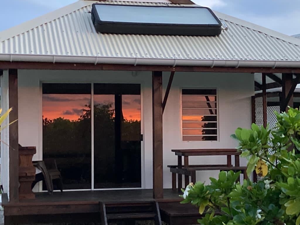 Medeni mjesec ili pas... Minijaturna kuća uz more, sa strane lagune i u privatnom uglu. Prava čahura od kreveta s pogledom na more. Svidjet će vam se ovaj jedinstveni i romantični odmor uz nezaboravne zalaske sunca, vaš boravak će vas oduševiti. Prepustite se zvuku valova. Nalazi se samo 700 metara od aerodroma i na pola puta od ronilačkih centara Ako nema dostupnih termina, slobodno posjetite naš 2. dom Rangiroa Sunny House…još jedno dragocjeno mjesto uz more