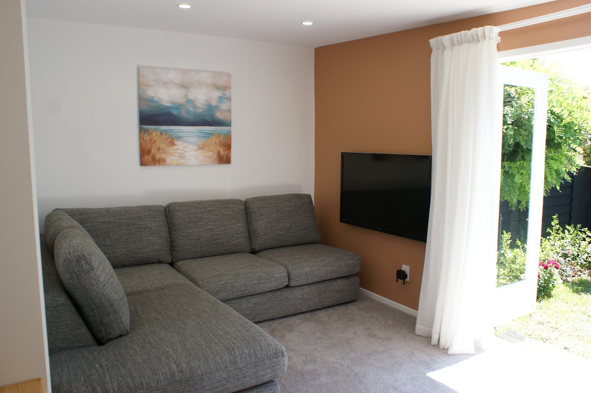 Ova samostalna jedinica se nalazi manje od 10 minuta hoda od grada New Plymoutha i priobalnog prilaza. Može se pohvaliti toplim udobnim prostorom sa svim sadržajima koji su vam potrebni. Ima zaseban ulaz iz glavnog smještaja koji omogućava veću privatnost s vlastitim kupatilom i čajnom kuhinjom (s mikrovalnom pećnicom, dva elementa, frižiderom, kuhalom za vodu i tosterom). Postoji mnoštvo besplatnih parking mjesta na ulici, kao i parking mjesto za jedan automobil pored airbnba (samo za male automobile).