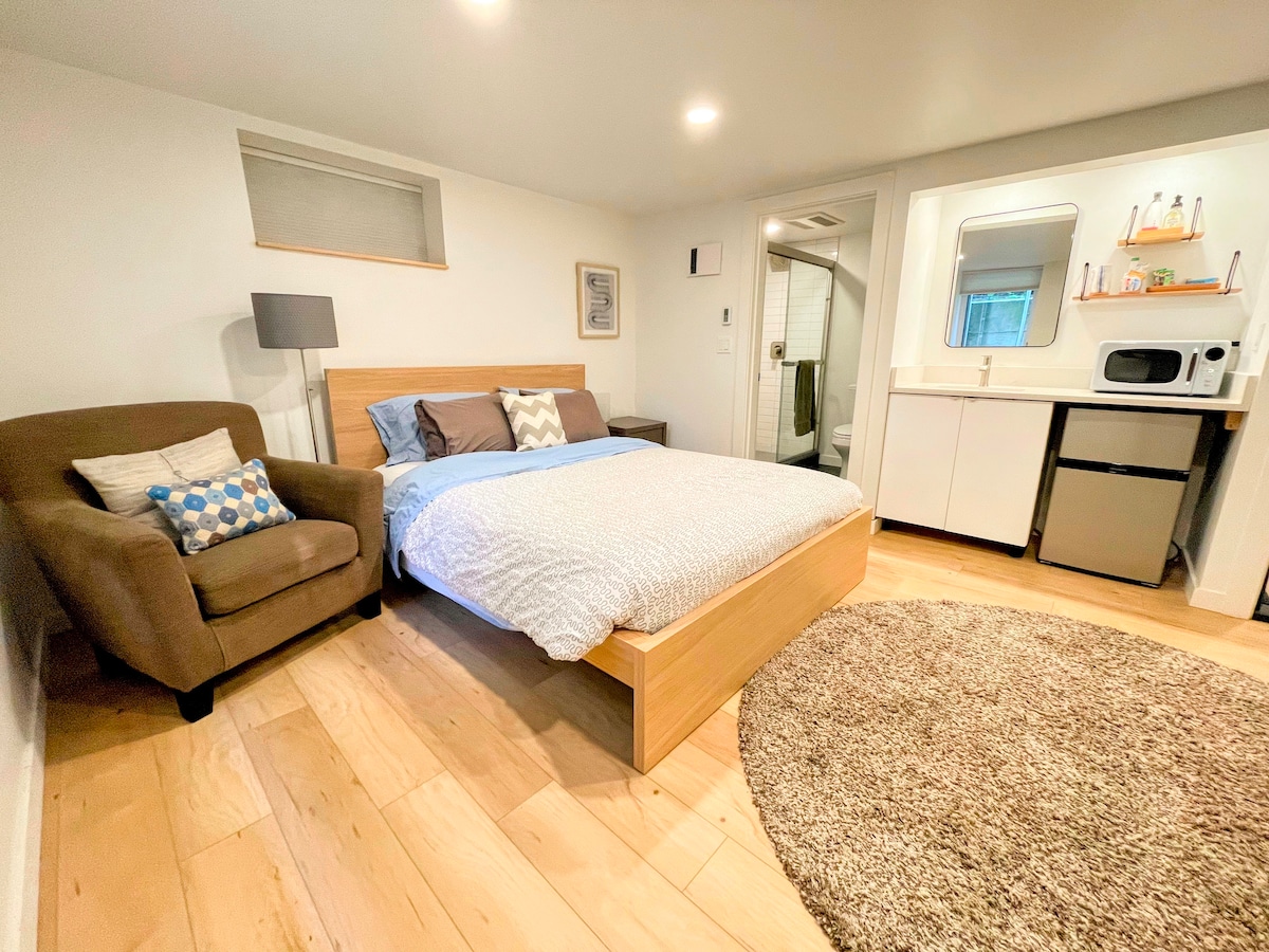 Savršeno za 2 osobe! Studio apartman sa svijetlim podrumom s privatnim ulazom, bračnim krevetom, čajnom kuhinjom s kafom, mikrovalnom pećnicom, tosterom, malim frižiderom, kupatilom sa punim tušem. U području % {list-Powell u SE Portlandu, u blizini stanice Holgate Max, Pickles poluprofesionalne bejzbolske utakmice, Lents Farmer 's Market, Reed College, Chin-Powell područje. Područje Woodstocka i Sellwooda su u blizini, zajedno sa ulicom SE Division Street i Portland Community College. Restorani i shopping su udaljeni nekoliko koraka.