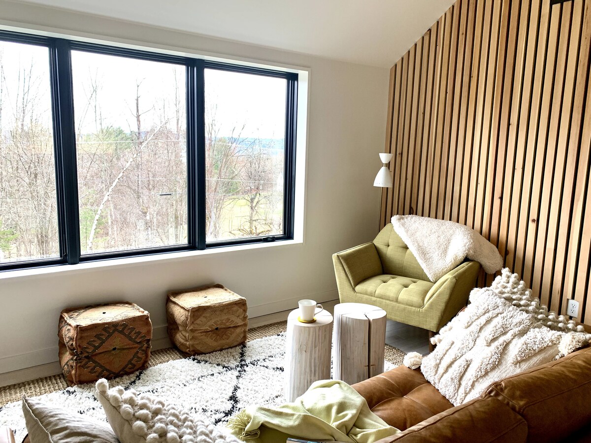 Ovaj prekrasan stan se nalazi na drugom spratu najpopularnije zgrade u ulici Bridge Street, pored Pokrivenog mosta s pogledom na rijeku Mad. Postavka je predivna, stan je besprijekoran i šarmantan. 15 minuta od skijališta Sugarbush i Mad River Glen, beskrajne pješačke staze, Mt. Biciklizam, kajakaštvo, golf, plivanje, ribolov i pješačka udaljenost do firme Lawson 's Finest Liquids Brewing Company. Pogledajte naše recenzije jer su bile pozitivne!