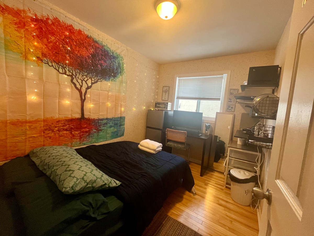 We bought our house in 2005 and have made many changes to it since. One of them being the 500 ft.² guest suite. It features its own entrance, full kitchen, full bathroom, cozy bedroom and living room areas. It sits on a well manicured double lot and is attached to the main house in the heart of Didsbury, on a beautiful tree-lined street. It is walking distance to the shops of Main Street and our beloved cafés as well as a grocery store. Built in 1940, it is a house of many stories.