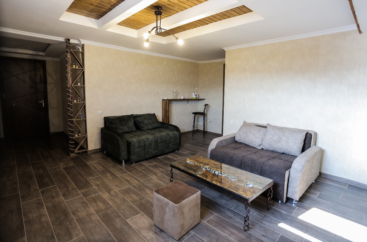Otvorena je nova gostinjska kuća s vrtom i verandom,s veličanstvenim pogledom na Jvari i Svetitskhoveli,u centru drevne prijestolnice Gruzije, grada Mtskheta, ispred katedrale Svetitskhoveli. Kuća ima 3 sobe s pojedinačnim kupatilima i svim sadržajima i jednu udobnu trpezariju s barom,gdje, po želji,možete koristiti kuhinju. Pored tri sobe u vrtu, tu je i nova klimatizovana seoska kućica s malom kuhinjom i kupatilom. Ljubazni domaćini govore ruski i engleski.