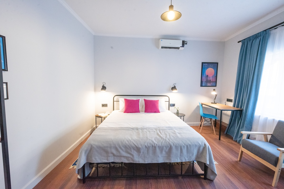 Novouređeni stan se nalazi na prvom spratu dvospratne kuće od cigle i sastoji se od dvije odvojene sobe s čajnim kuhinjama s najnovijim uređajima ,kupatilima i odvojenim ulazima. Prozor jedne sobe gleda na mirnu ulicu starog Tbilisija. Ulaz u ulicu je također s ulice. Odvojeni ulaz u drugu sobu od dvorišta. Moderan split sistem,frižider i TV ravnog ekrana - sve vam je na raspolaganju! Živim u blizini, pa sam uvijek spreman pomoći gostima