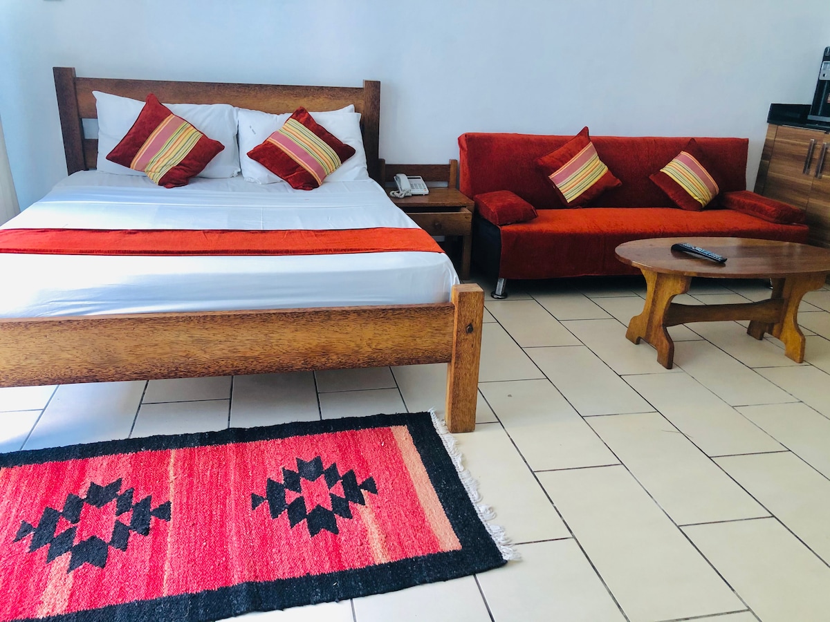 Ovaj svijetli, namješteni studio apartman, s direktnim pristupom slikovitoj plaži Bamburi, savršena je lokacija za samostalni odmor ili porodično putovanje. Sadržaji uključuju restoran i bar, fitness sobu, bazen i bazen za bebe/djecu. Naš kutak plaže je miran i tih, ali ležerna šetnja uz plažu će vas odvesti u življe dijelove u roku od nekoliko minuta. Ostala mjesta za rekreaciju (City Mall Nyali, Haller Park i Mombasa Marine Park) su nadohvat ruke.