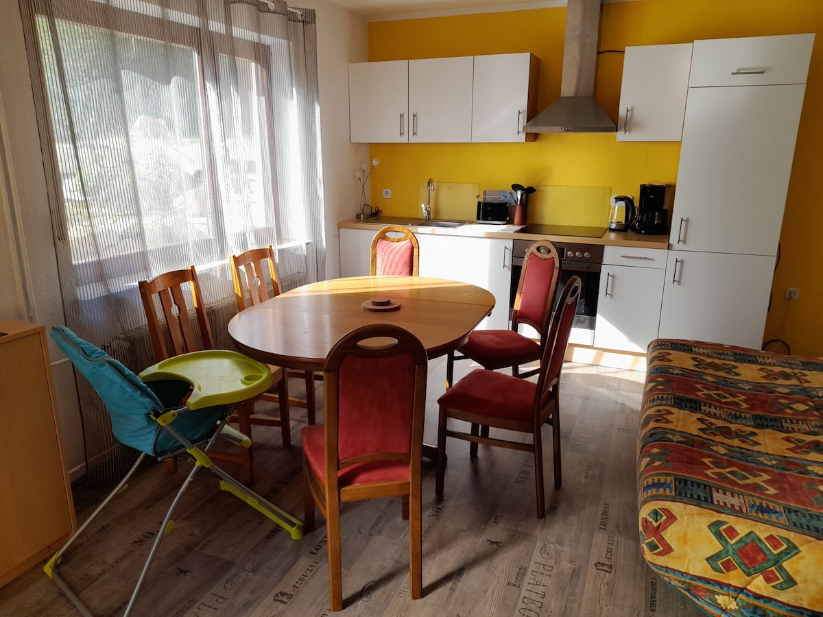 Panoramski stan od 60 m² – za do 4 gosta • Veliki bračni krevet, kauč na razvlačenje, sklopivi krevet (na zahtjev), dječji krevetić • Potpuno opremljena kuhinja: šporet, rerna, čajnik, aparat za kafu, mašina za suđe, frižider, TV • Visokokvalitetna posteljina, peškiri, kafa i čaj • Velika terasa s ležaljkom za sunčanje, pogled na prirodu Odlična lokacija: • 5 minuta automobilom / 30 minuta hoda do centra Idsteina • Planinarske staze počinju od vrata • 20 minuta do aerodroma u Frankfurtu i Wiesbadena • 2 km do autoputa • Obližnje igralište i vrhunski restoran s roštiljem