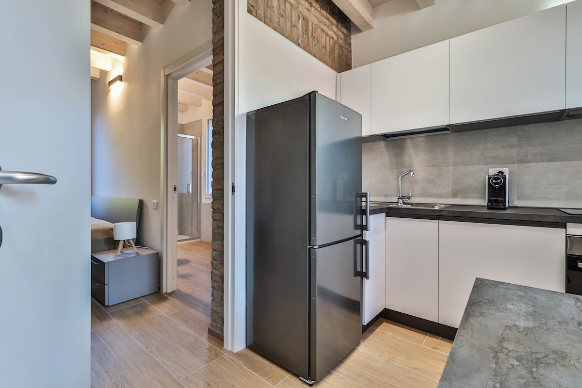 ★★★ EMMINA STANICA★★★ Elegantan stan s praktičnom PRIVATNOM GARAŽOM smješten na prvom spratu moderne zgrade. Strateški je smješten između Glavnog kolodvora, Muzeja Enza Ferrarija i poznate Vojne akademije. Stan ima sve sadržaje potrebne za luksuzan boravak, bilo da ste ovdje poslovno ili privatno. 4K UHD pametni TV s Netflixom u svakoj sobi, klima-uređaj, Wi-Fi, perilica sa sušilicom, mašina za pranje suđa i sef.