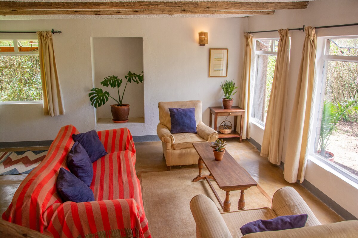 Dobro došli u svoj mirni odmor u ovom lijepo uređenom smještaju s 2 spavaće sobe dizajniranom za udobnost, romantiku i opuštanje. Sagrađena 1966. godine, ova renovirana kuća s dvije spavaće sobe zadržava svoj prvobitni šarm, a istovremeno nudi ažuriranu udobnost. Probudite se uz mirna jutra s pogledom na Mt. Kenija, dok šetate stazom popločanom kabrioletom na istočnoj strani objekta. Pažljivo ukrašeni toplim detaljima i svom osnovnom opremom, osjećat ćete se kao kod kuće. Vaši komentari su neprocjenjivi za nas.