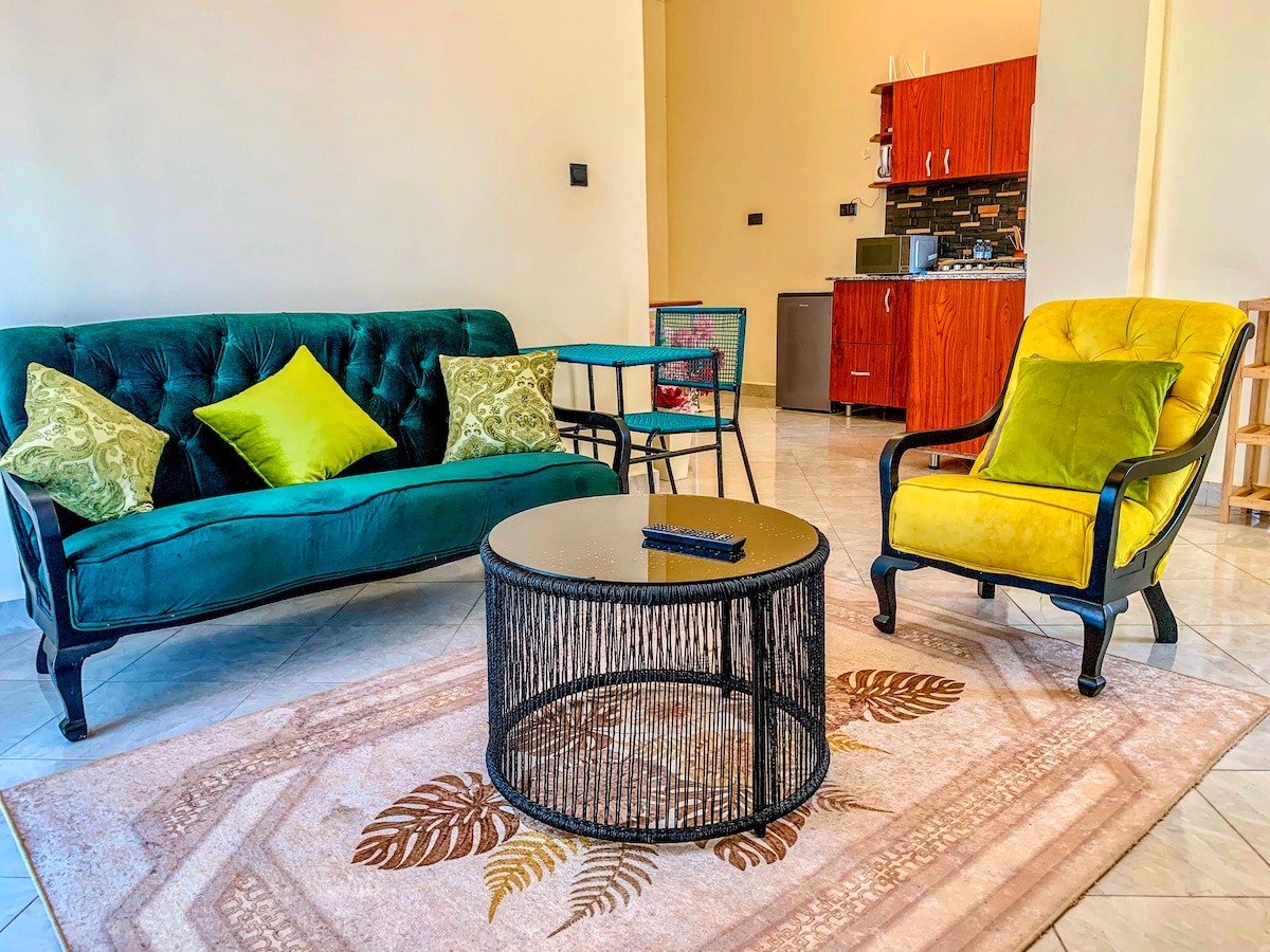 Pobjegnite u ovaj luksuzni jednosobni kondominij uz jezero, samo 20 minuta od Međunarodnog aerodroma Entebbe. Savršeno za odmor vikendom i idealno za osobe koje rade na daljinu i traže spokojan i elegantan ambijent. Ima bračni krevet (160x200), potpuno opremljenu kuhinju, moderno kupatilo, brzi Wi-Fi i udoban dnevni boravak s pametnim TV-om. Uživajte u besprijekornoj udobnosti, modernim sadržajima i mirnom okruženju za rad ili opuštanje. Ovo elegantno utočište obećava udobnost i spokoj za vaš odmor.