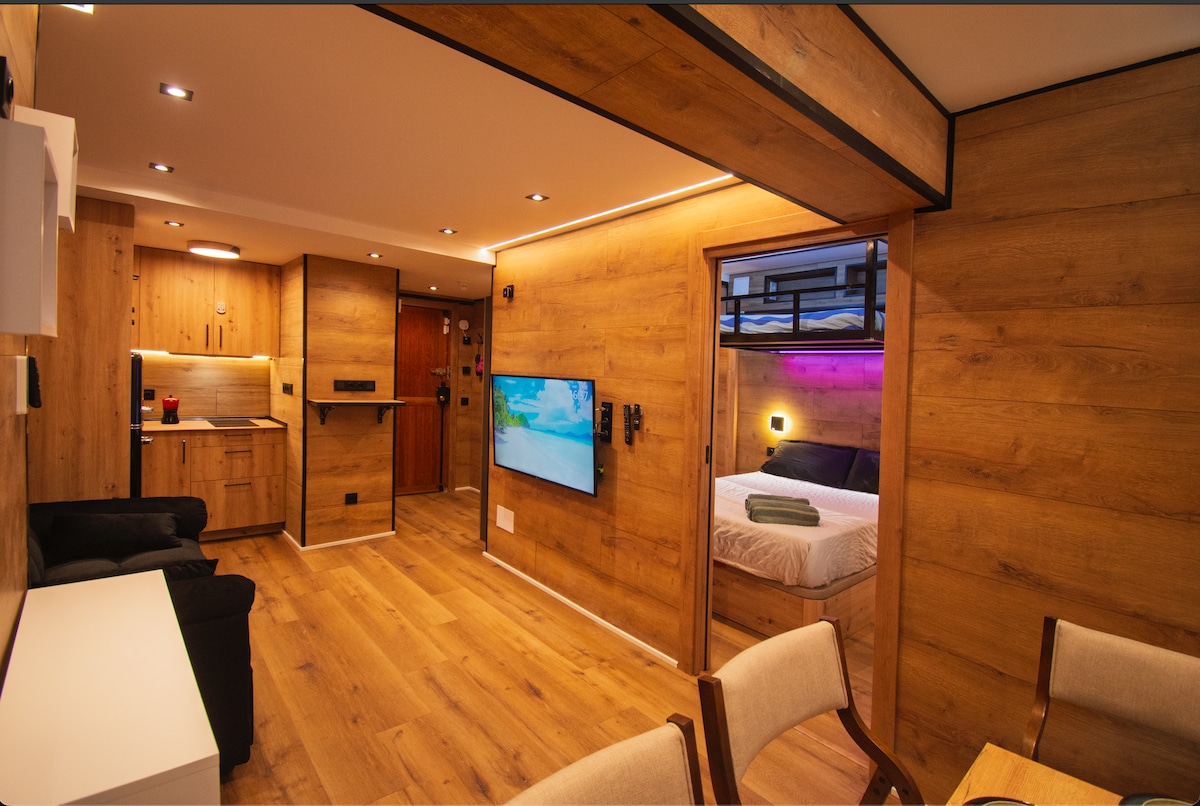Opustite se i uživajte u ovom luksuznom, tihom i elegantnom smještaju, s internetom i ostavom za skije, sa svime što vam je potrebno za dobar odmor na kraju dobrog dana u planinama gdje možete uživati u predivnim pogledima i zalascima sunca bez premca. Prva stanica žičare je udaljena oko 150 m. Pored naše rezidencije nalaze se supermarketi, barovi itd., gdje možete riješiti sve nepredviđene probleme na putovanju.