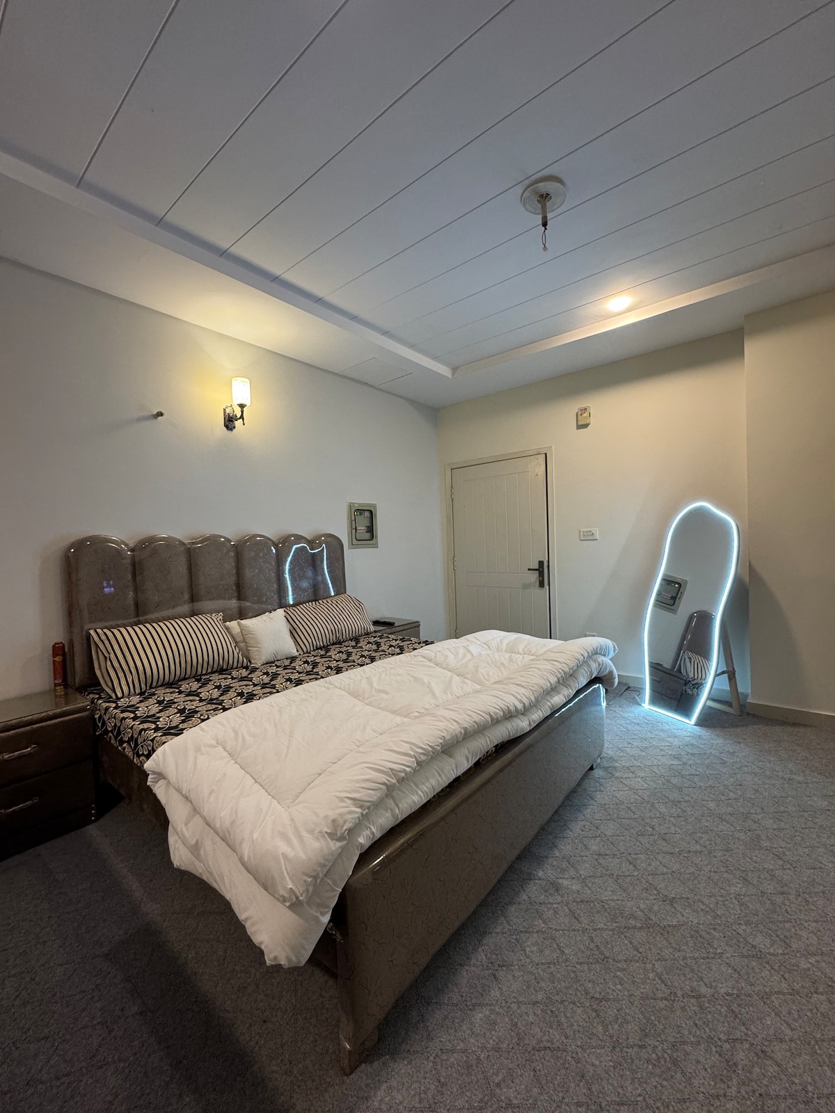 Escape to our serene bedroom oasis, perfectly suited for couples and small families seeking a relaxing getaway .Enjoy a comfortable night's sleep in our cozy bedroom . The apartment features a comfortable bed, a well-equipped kitchenette, and a fully smart tv, air conditioner, 24/7 internet, electric heating rod for hot water. Located in a prime location, you'll have easy access to nearby attractions such as imtiaz mall, Buch international hospital, cinema and restaurants .