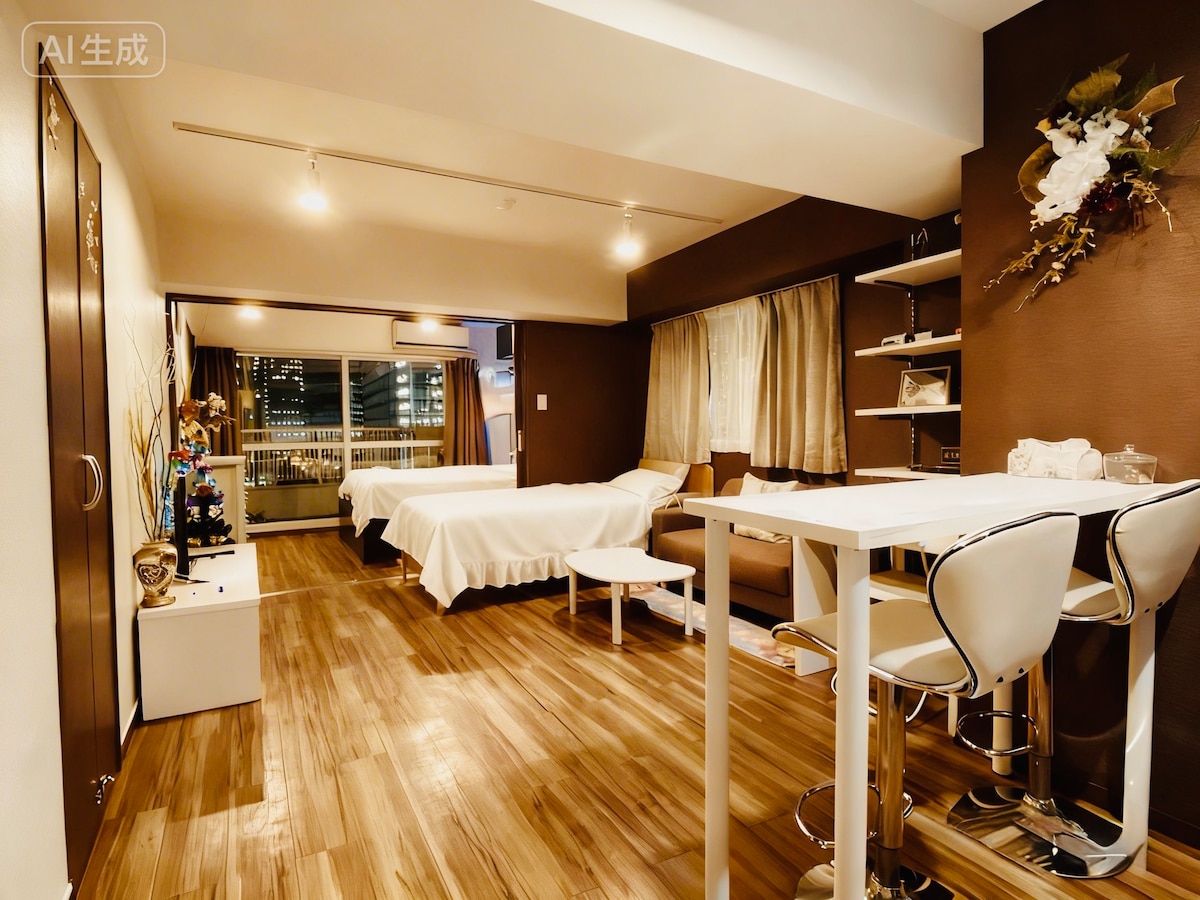 ★Novoizgrađeni stan na 7 spratova, armiranobetonska konstrukcija, s liftom, 550m od stanice Oshang Izlaz A3, 1K, veličine oko 25 kvadratnih metara, 1 bračni krevet, može se dodati krevet za jednu osobu, najnovija konfiguracija namještaja od masivnog drveta, kućanskih aparata, posteljine, peškira za kupanje, papuča.Aparthotel je posvećen tome da stanarima pruži udoban i ugodan boravak i njihovu pažnju na čistoću soba.