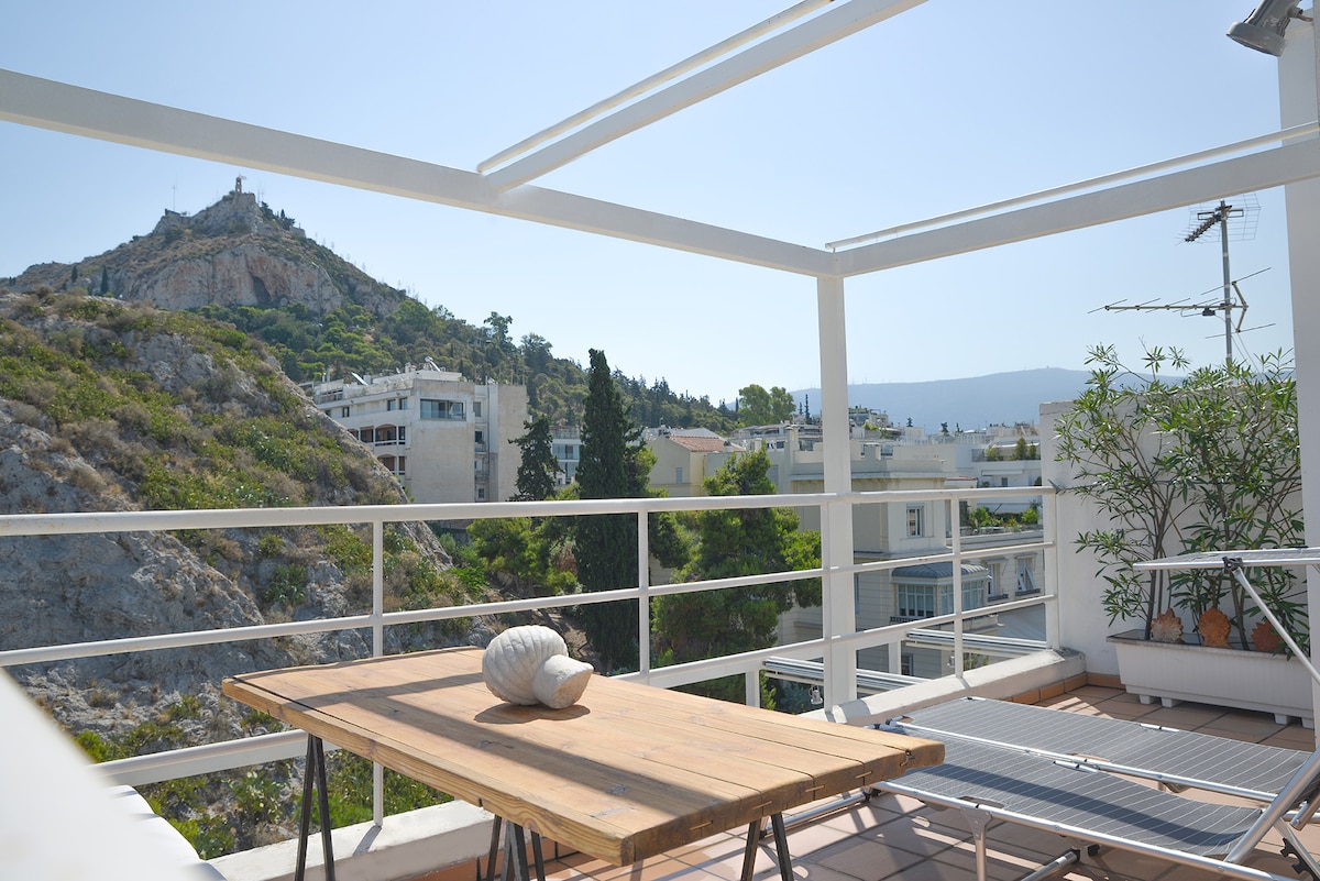 Svijetli studio s terasom i pogledom na Atinu